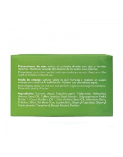 La renovación profunda gracias a su café brasileño rico en cafeína y el azúcar de caña que arrastran las células muertas e impurezas, dejando la piel luminosa y firme.
