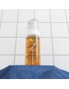 Al presionar el envase, el producto sale en forma líquida, pero al contacto con el aire se transforma en una espuma ligera y abundante que limpia en profundidad y deja una agradable sensación de frescor inmediato.